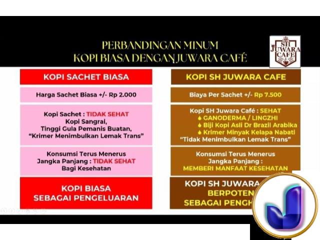 SH Juwara Cafe adalah satu satunya kopi yang mengandung ganoderma. Ganoderma adalah sejenis jamur yang digunakan sejak pengobatan China kuno.