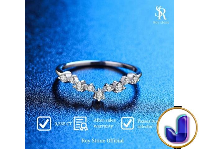 Product's Name : RoyStone - Cincin Moissanite V Shaped Original Aksesoris Wanita Perhiasan Silver 925 Lapis Emas 18K